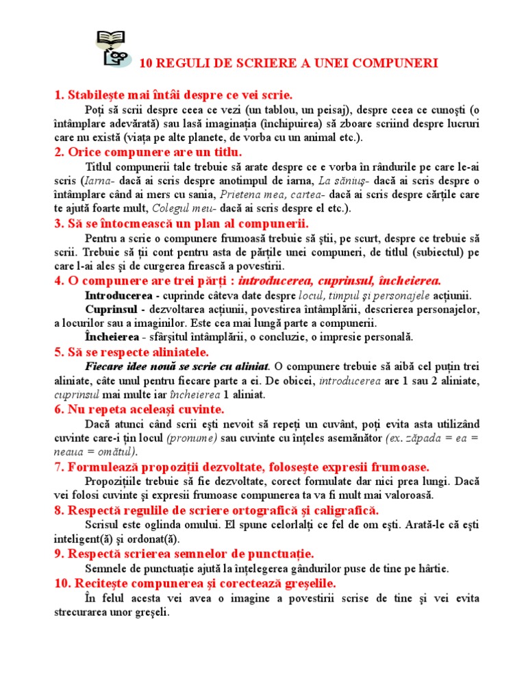 Please copy and paste this embed script to where you want to embed. Instruirea elevului pentru depasirea obstacolului reprezentat de textul cerut, indiferent de. Cu stil,trebuie sa folosesti expresii frumoase,sa exprimi clar si concis, sa delimitezi bine ideile, sa ai imaginatie, vocabular, iar incheierea sa fie facuta frumos.depinde si ce fel de compunere. Colecție de la miruna mocanu. Exersează compunerile pentru nota 10!
