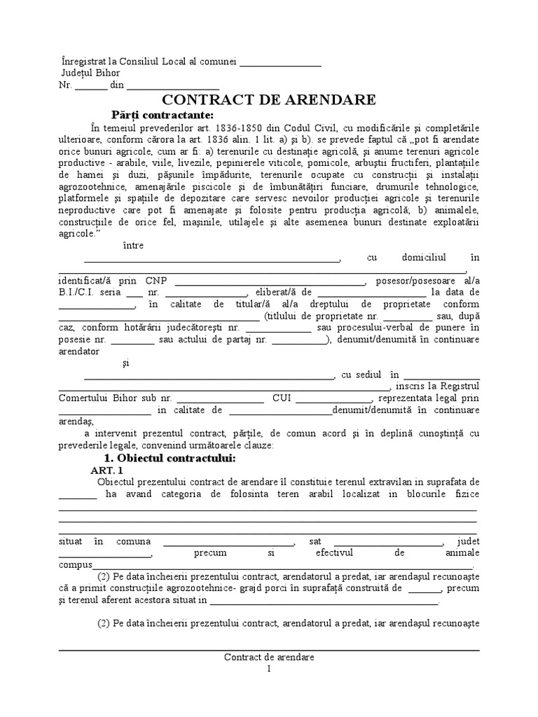Adelina blajanu contractul de arenda ce este contractul de arenda? Cetatenii si firmele straine vor putea lua in arenda terenuri agricole prin eliminarea de catre guvern, de la 1 ianuarie 2006, a restrictiilor existente. You might want to adjust the.