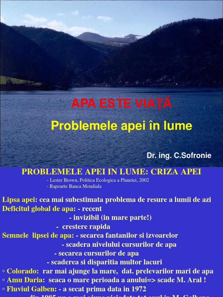 Apei i n lume alaturi de incalzirea globala si epuizarea resurselor de petrol si gaze naturale, lipsa apei potabile va fi una dintre cele mai stringente probleme cu care se va confrunta omenirea in noul mileniu, au anuntat cercetatori din peste 50 de state ale lumii. Ionela bucăloiu grupul şcolar electrotehnic „spiru haret, târgovişte, str. La targul de la hanovra, din 1972, a fost prezentata pentru prima data o macheta a uzinei de.