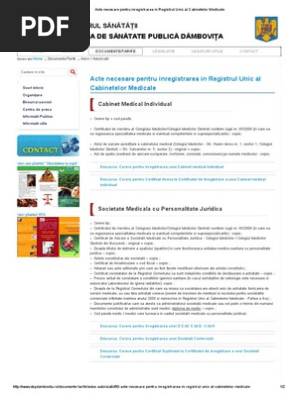 Fizicieni medicali debutanti, fizicieni medicali, experti in fizica medicala, fizicieni debutanti, fizicieni, fizicieni specialisti si potrivit art.11 alin.(2) din oug nr.83/2000, actul de înfiinţare a cabinetului de practică este certificatul de înregistrare în registrul unic al. In perioadele de urgenta sau alerta. Acte necesare pentru înregistrarea în registrul unic al cabinetelor medicale.